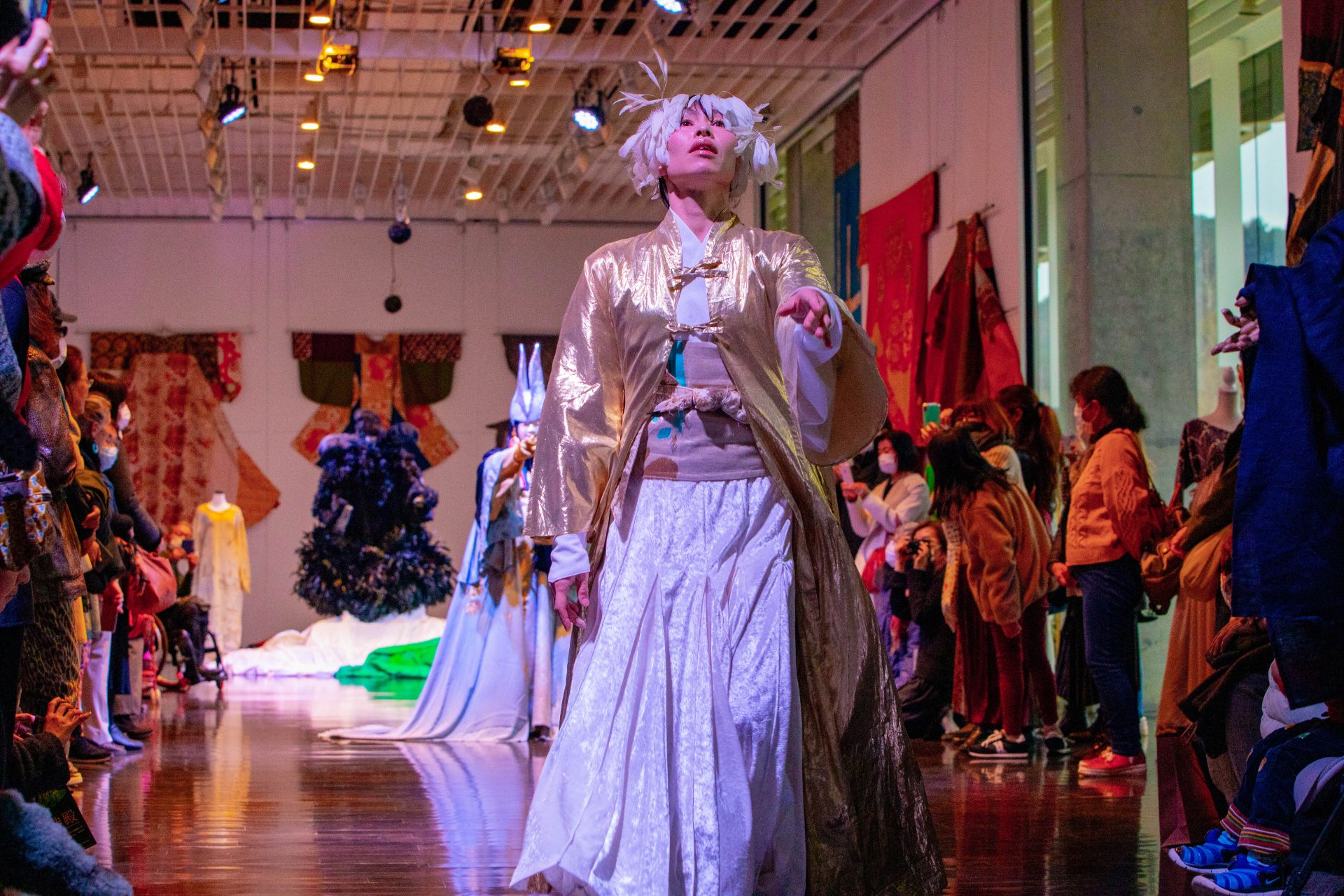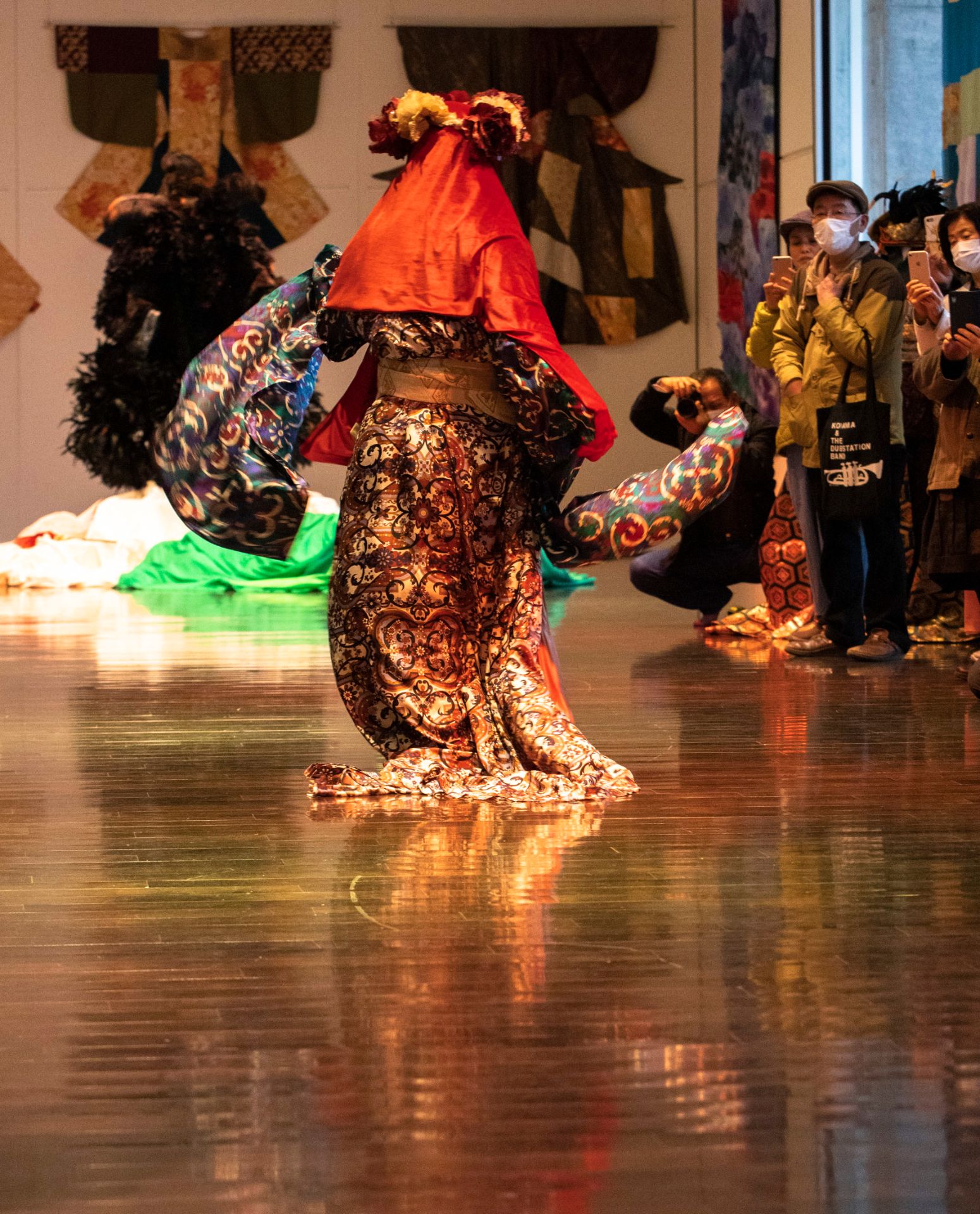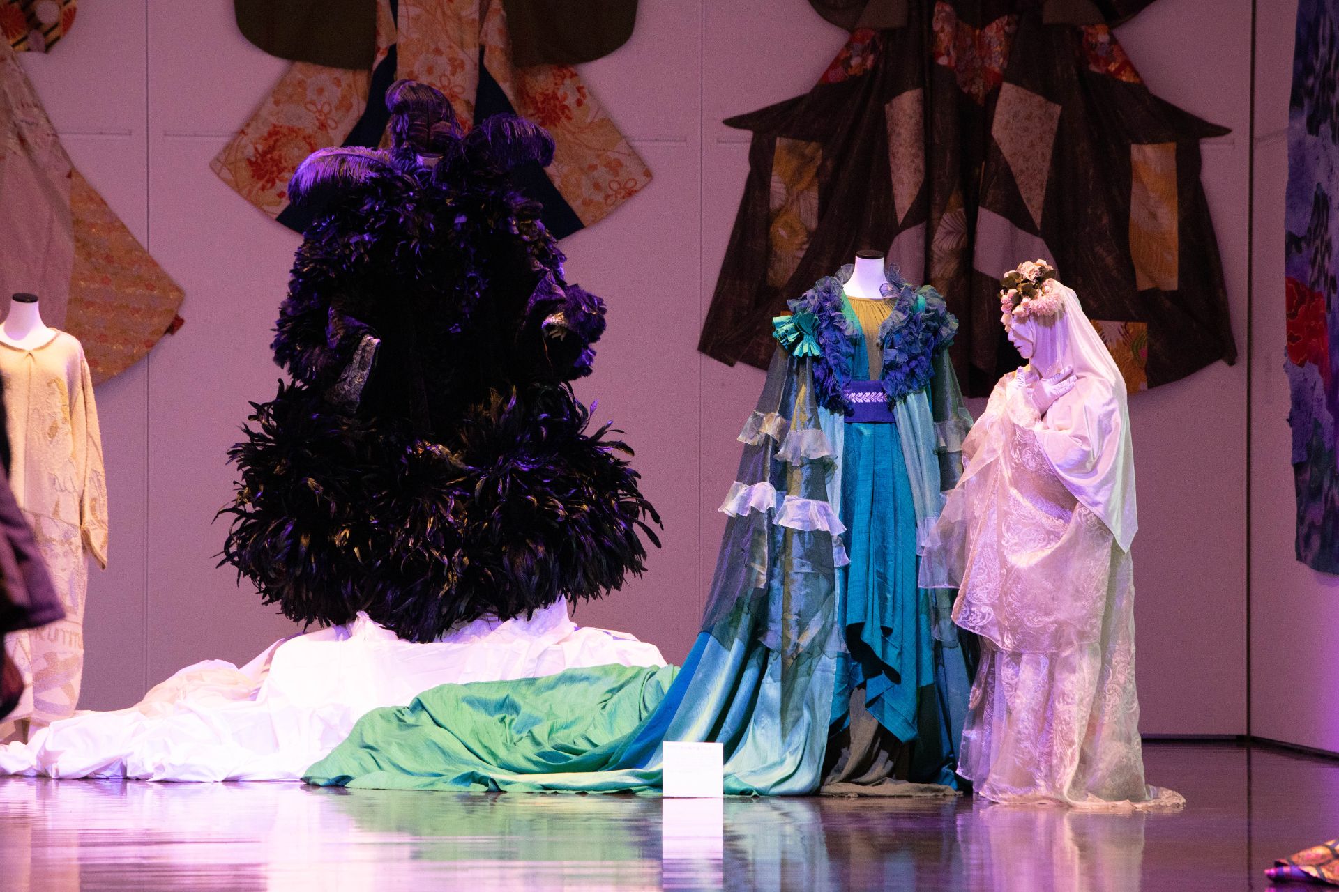 展示会場は東洋、西洋、そして変幻自在という3つのテーマが織りなす「美の神殿」へと変貌。会期中の7日間、時広氏自らの審美眼により日々展示替えが施され、合わせて100点近い衣装の数々が披露されました。また会場には試着コーナーを設け、鑑賞者の皆さんが衣装を身に着け、実際に体験できる機会も設けました。