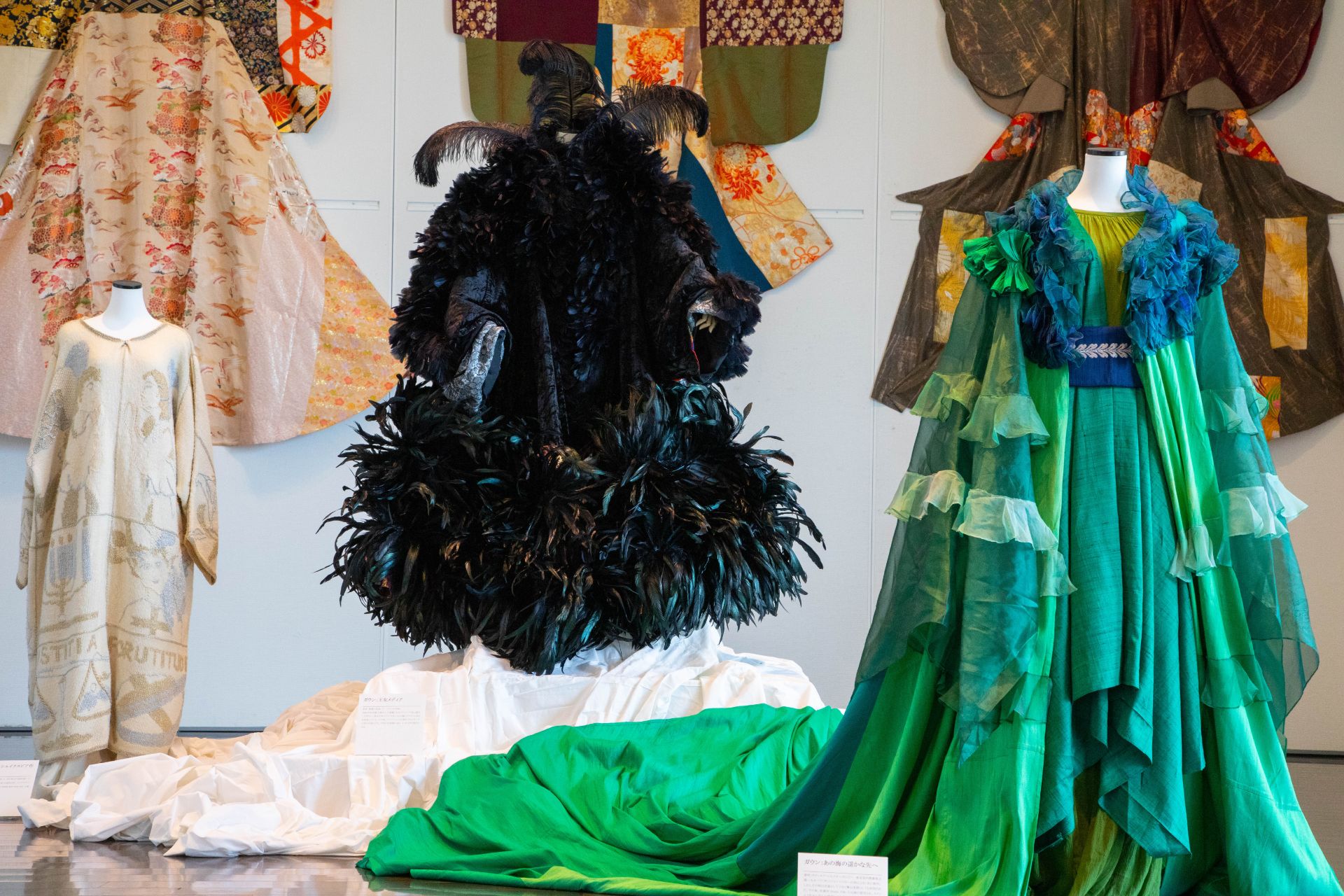 舞台という時空間のなかで身にまとわれ、生き生きと輝きを放つ衣装たち。国内外の舞台で多くの俳優やパフォーマーと競演してきたそれらは、世界中の貴重な布地がふんだんに使われ、他に類を見ない独創的なデザインにより、衣装そのものに独自の美の力が備わっています。