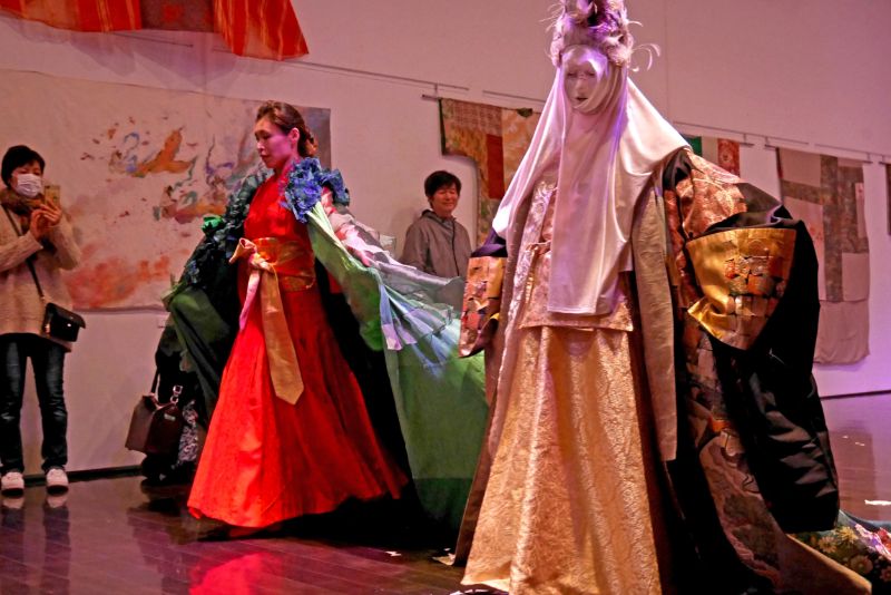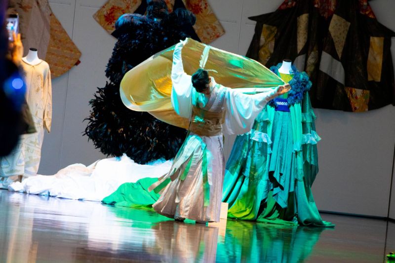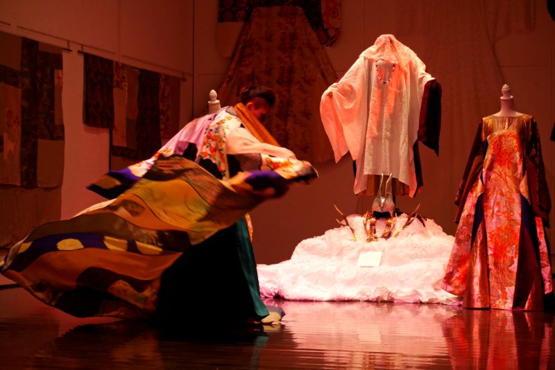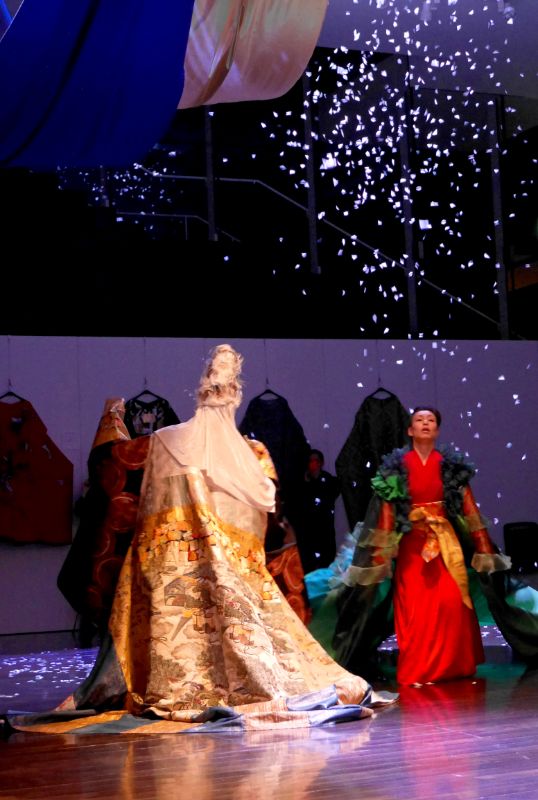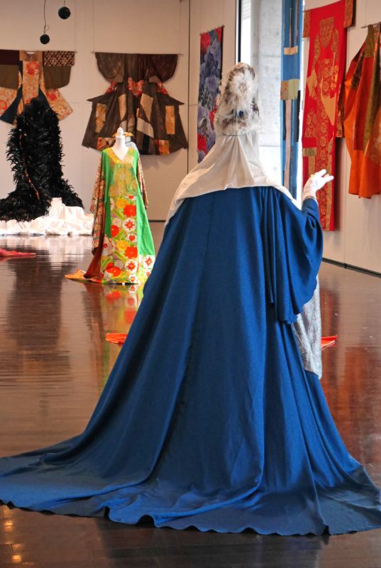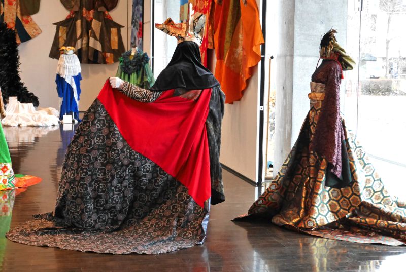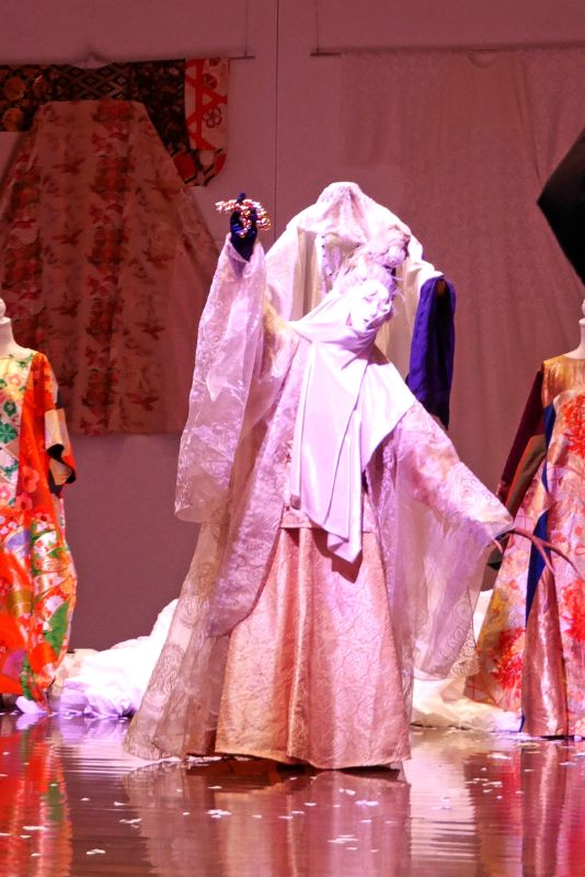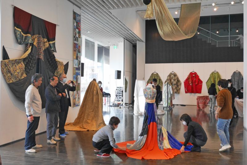展示会場は東洋、西洋、そして変幻自在という3つのテーマが織りなす「美の神殿」へと変貌。会期中の7日間、時広氏自らの審美眼により日々展示替えが施され、合わせて100点近い衣装の数々が披露されました。また会場には試着コーナーを設け、鑑賞者の皆さんが衣装を身に着け、実際に体験できる機会も設けました。