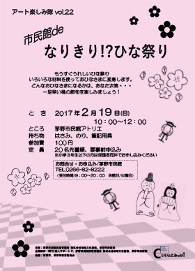 もうすぐうれしいひな祭り いろいろな材料を使っておひなさまに変身します。 どんなおひなさまになるかは、あなた次第・・・ 一足早い桃の節句を楽しみましょう!