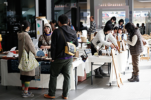 「食べて、語って、来てみて楽しい、人と人をつなぐ〈マルシェ=市場〉」をテーマに飲食・交流にちなんだスペースをオープンしました。地元飲食店など16の団体・個人のご協力のもと、八ヶ岳山麓の農産物・クラフト、〈縄文〉にちなんだ食・デザイングッズをご紹介し、通りがかりの皆さんに楽しんでいただきました。交流企画として、「縄文手づくり体験」「身近に感じる縄文トーク」(協力:尖石縄文考古館)も開催し、大勢の方にご参加いただきました。