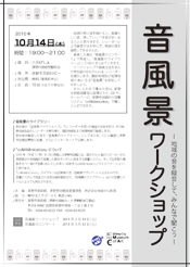 地域の中に耳を傾けると、素晴らしい音、残していくべき音が多くあることに気付きます。レコーダーによる録音の方法を学んで、地域の音を録音してみませんか。録音した音は「音風景のコンサート」で発表し、「音風景のライブラリー」としてCDやホームページにまとめていきます。 ●2010年10月14日(木)19:00~21:00 ◎ 音風景のライブラリー ◎ 音具について 主催:茅野市美術館、茅野市民館指定管理者 株式会社地域文化創造 ●次回予定 |